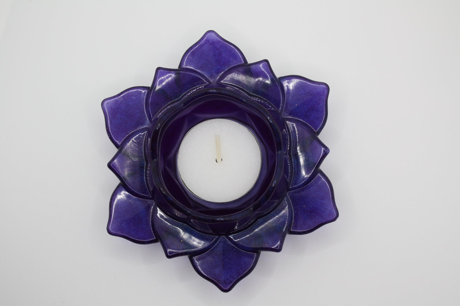 Add a calming and pretty touch to any room with this handcrafted lotus candle holder. Designed with beautifully layered petals, it cradles your candle like a blooming lotus flower. when in a dark setting, a lit candle will cause a soft glow creating a peaceful ambiance, perfect for relaxation, meditation, or simply improving your space.