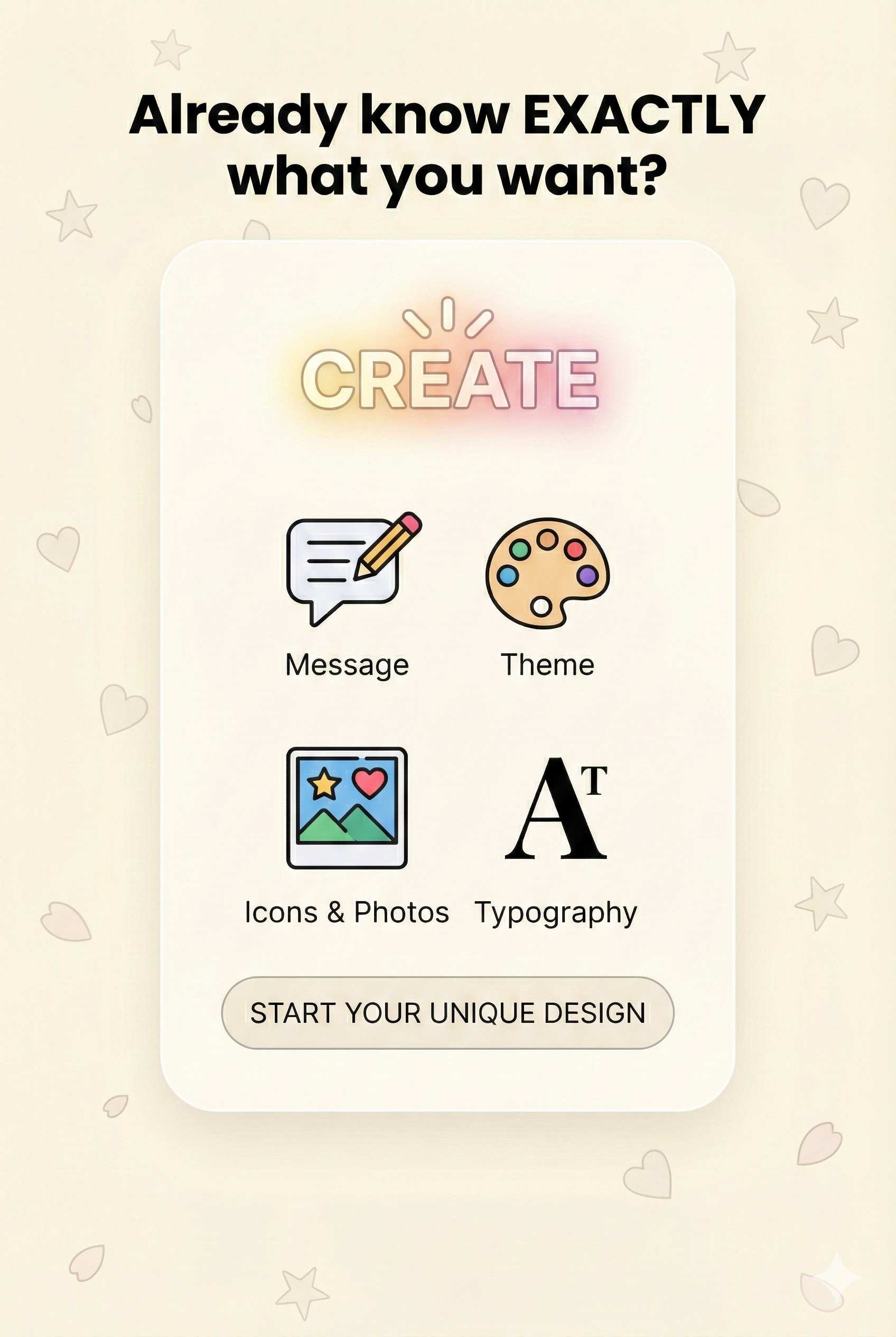 Just tell us the occasion and some important details and we will review it all and take the wheel in making you your personalised gift!